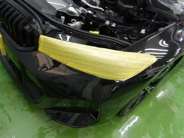 コーティング施工時、ボンネットやバンパーの処理中に誤ってヘッドライトのハードコートを磨いてしまわないよう、しっかり保護する必要があります。