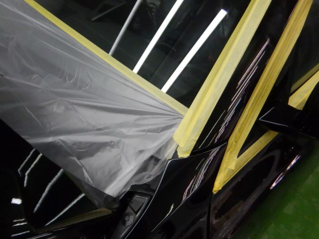 ヘッドライトのしっかりとした養生は必須です。