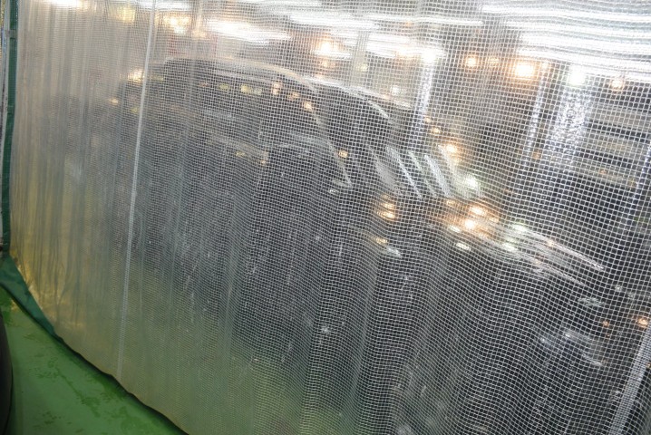 施工時は1台毎に間仕切を使う事でコンパウンド等の粉の被害や温度と湿度管理を適正にします。じつはこれ非常に大切な施工環境になりますので要チェックですよ。