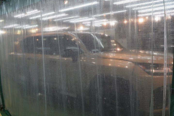 施工時は1台毎に間仕切を使う事でコンパウンド等の粉の被害や温度湿度管理を適正にします。じつはこれ非常に大切な施工環境になりますので要チェックですよ。