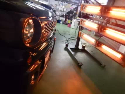 施工温度についてはコーティング施工では最低条件ですが、施工後の不安定な状態を解消するためと、コーティングの被膜強度を上げるためカーボンヒーターによる焼付処理は必須であるとカービューティープロ札幌ドーム前では「行わない理由ではなく行う理由を考えます。」